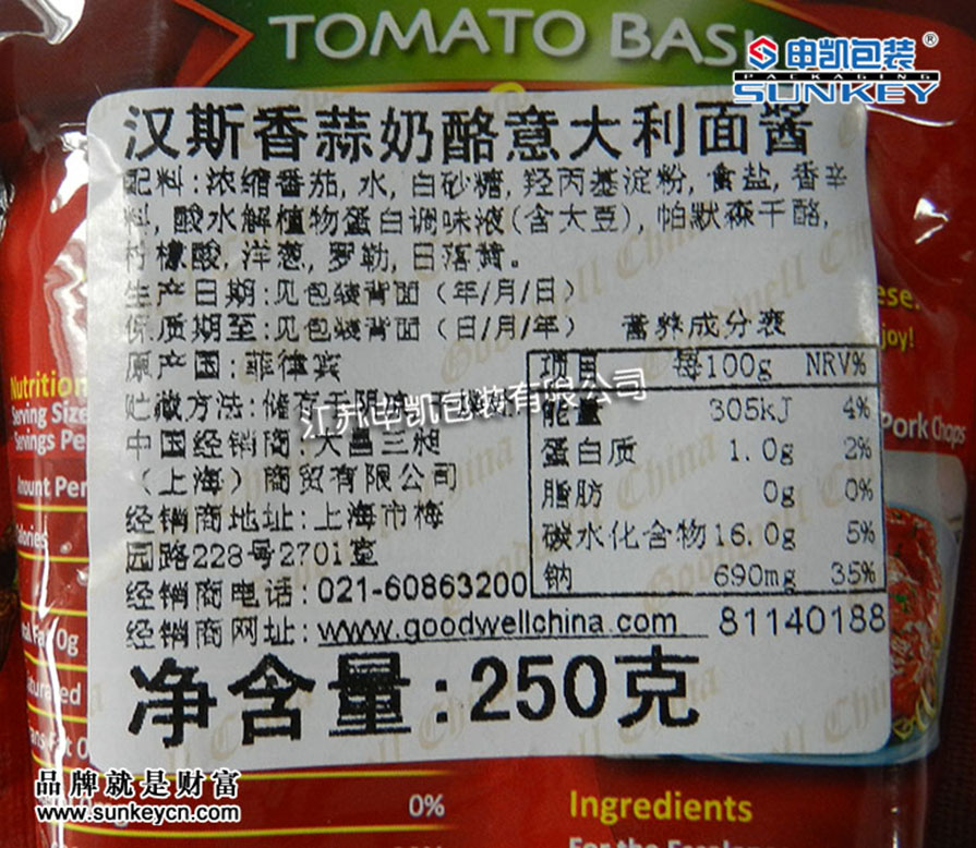 香酸奶酪意大利面醬包裝
